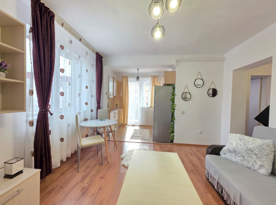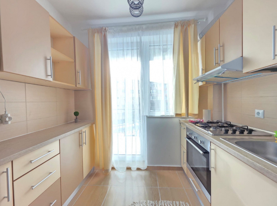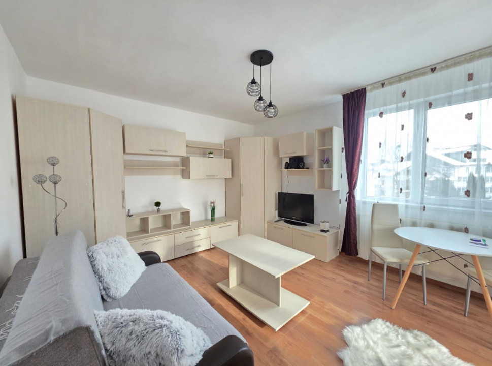Este mobilată și utilată complet: combină frigorifică, plită, aragaz, cuptor cu microunde, mașină de spălat haine, TV, sistem home cinema, masă și scaune pentru balcon. Garsoniera este renovată, curată și pregătită pentru mutare imediată.