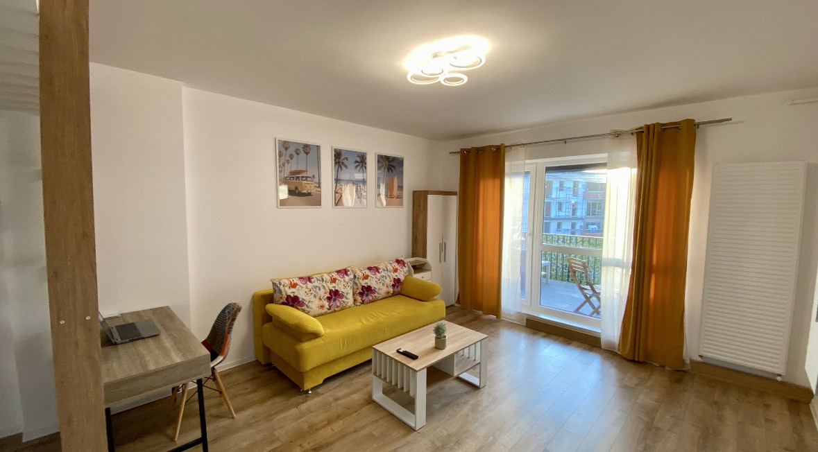 Locuința este situată la etajul 2, are o suprafață utilă de 45 mp și dispune de o terasă de 14mp, ideală pentru momente de relaxare. Studio-ul este complet mobilat și utilat, amenajat într-un stil modern, cu spații bine organizate și un ambient plăcut, potrivit pentru o persoană sau un cuplu.