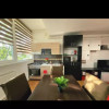 • Bucătărie utilată: plită, cuptor electric, hotă, cuptor cu microunde, frigider
