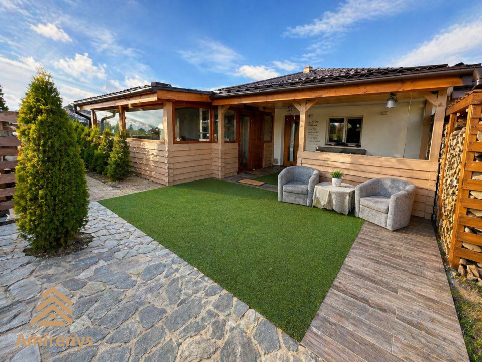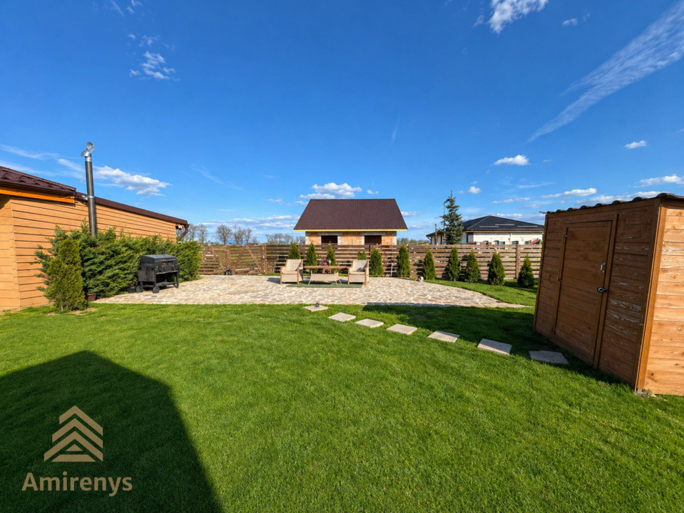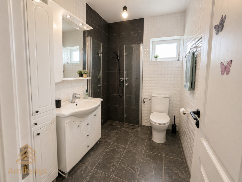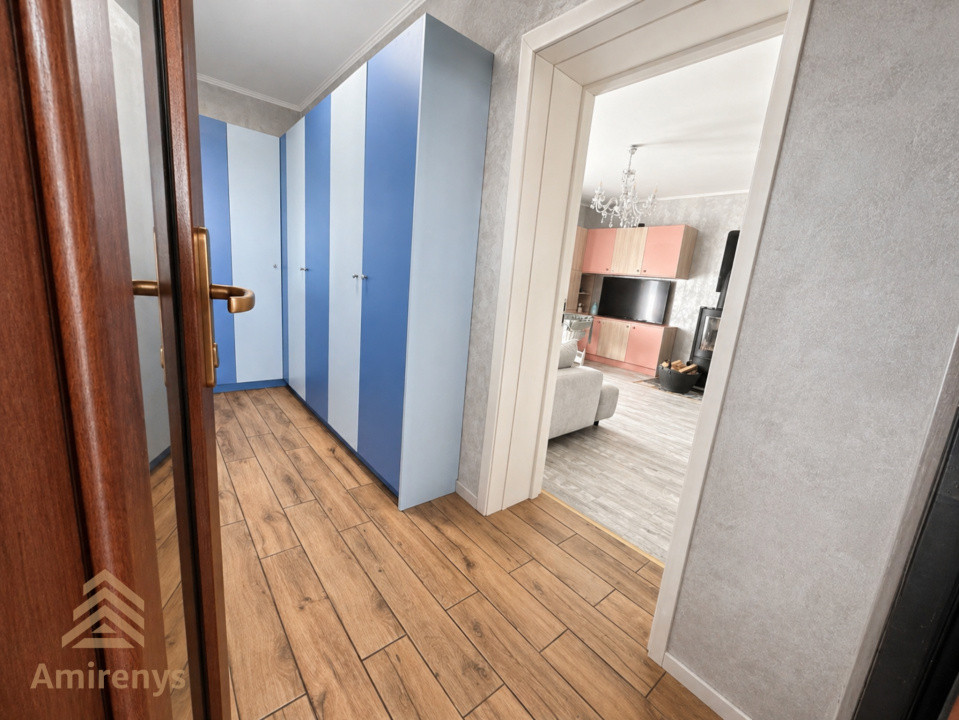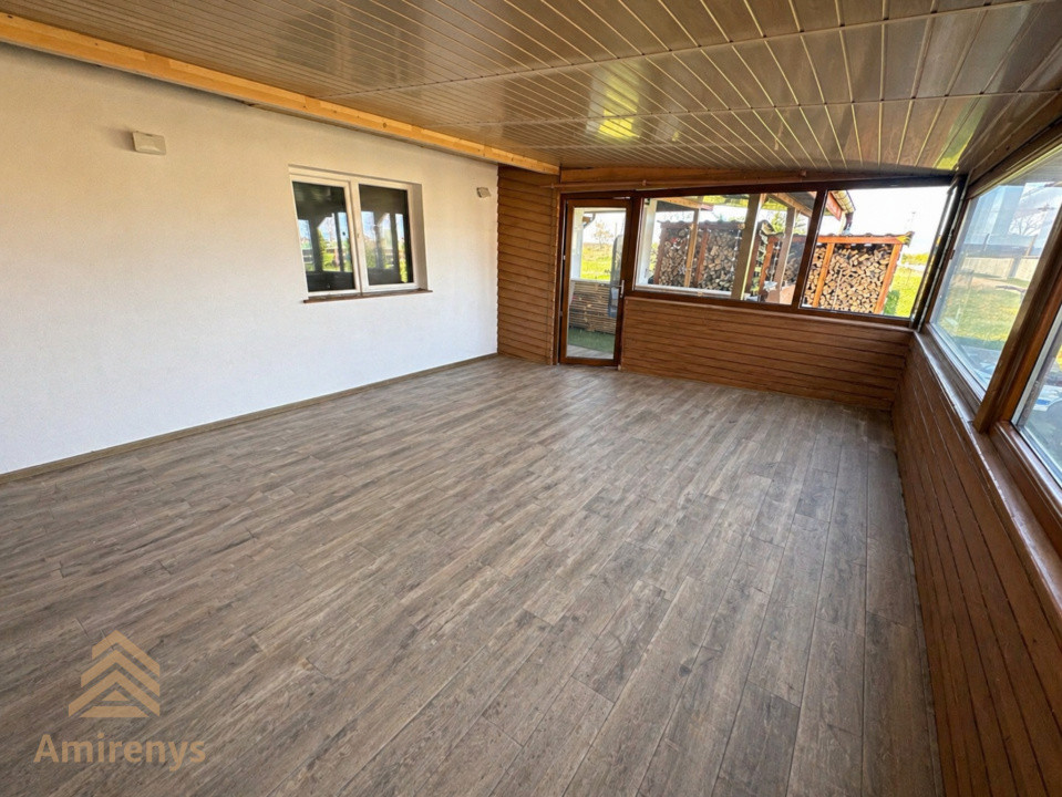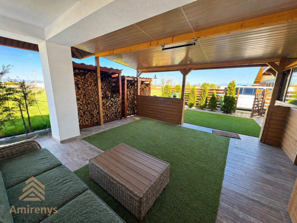 Casa este renovată recent și beneficiază de dotări moderne precum încălzire în pardoseală, centrală proprie, șemineu, aer condiționat, sistem de alarmă, videointerfon, senzori de fum, internet prin fibră optică și curent trifazic. Interiorul este amenajat modern, cu finisaje bine alese, bucătărie mobilată, tâmplărie PVC cu geam termopan și pardoseli din parchet, gresie și marmură.