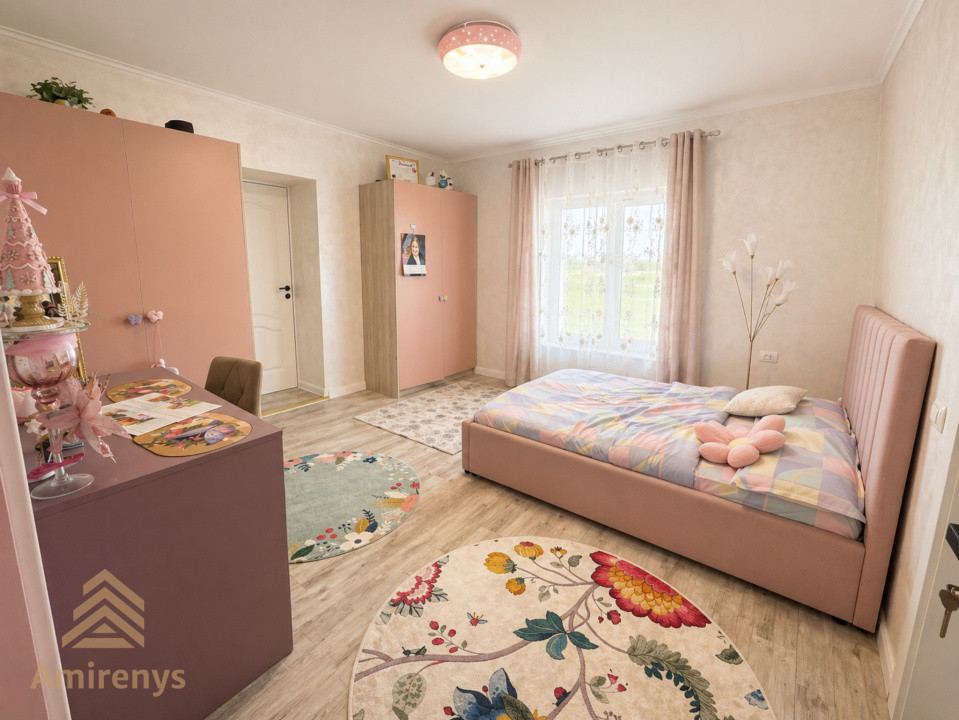 Locuința este compartimentată eficient și oferă spații generoase, potrivite pentru o familie care își dorește confort și funcționalitate. Proprietatea dispune de 5 camere, bucătărie, 2 băi, dressing, curte amplă și locuri de parcare.